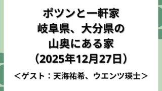 2025年12月28日放送のポツンと一軒家は岐阜県・大分県の山奥にある家について紹介します。 ポツンと一軒家では街から離れて山奥などでひっそりと住む人達に焦点を当てた番組です。 衛星写真を手がかりにぽつんと一軒家を調査そこにはど...