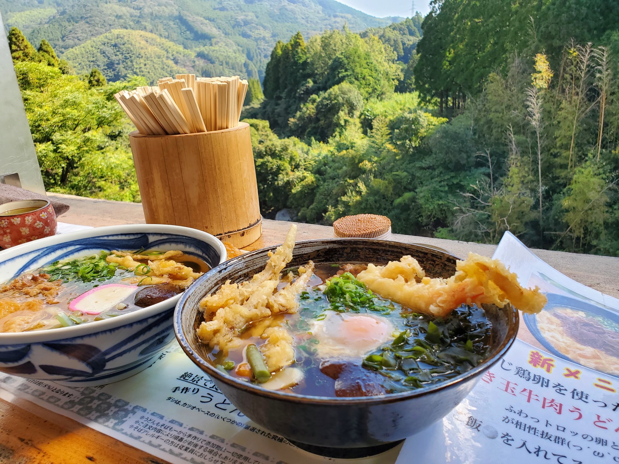番組では取材ができなかったのでメニューなどの紹介はありませんでした。ネットをみた感じだと番組で少し紹介していた名物のしいたけうどんは数量限定で900円らしい(確認時なので変わっている可能性あり)。